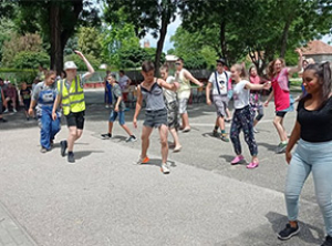 A táncot nemcsak az iskola udvarán, hanem a faluban több helyen is bemutatták a gyerekek.