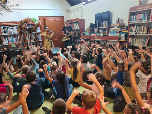 Október 4-én, szerdán Az „Őszi Könyvtári Napok” keretében a Lóca együttes tartott a szüreti napokhoz kapcsolódó interaktív műsort a község könyvtárában, az iskola első és második osztályos tanulóinak. A program osztatlan tetszést aratott mind a diákok, mind a kísérő pedagógusok körében. Népi dalok, mondókák, táncok és játékok segítségével a résztvevők eljutottak a szüretelésen keresztül, a csősz cselezésén át a vidám szüreti mulatságba. Lelkesen táncolt és mozgott mindenki a zenekar instrukciói szerint. Az interaktív program egy óriási, remek hangulatú össztánccal ért véget.
